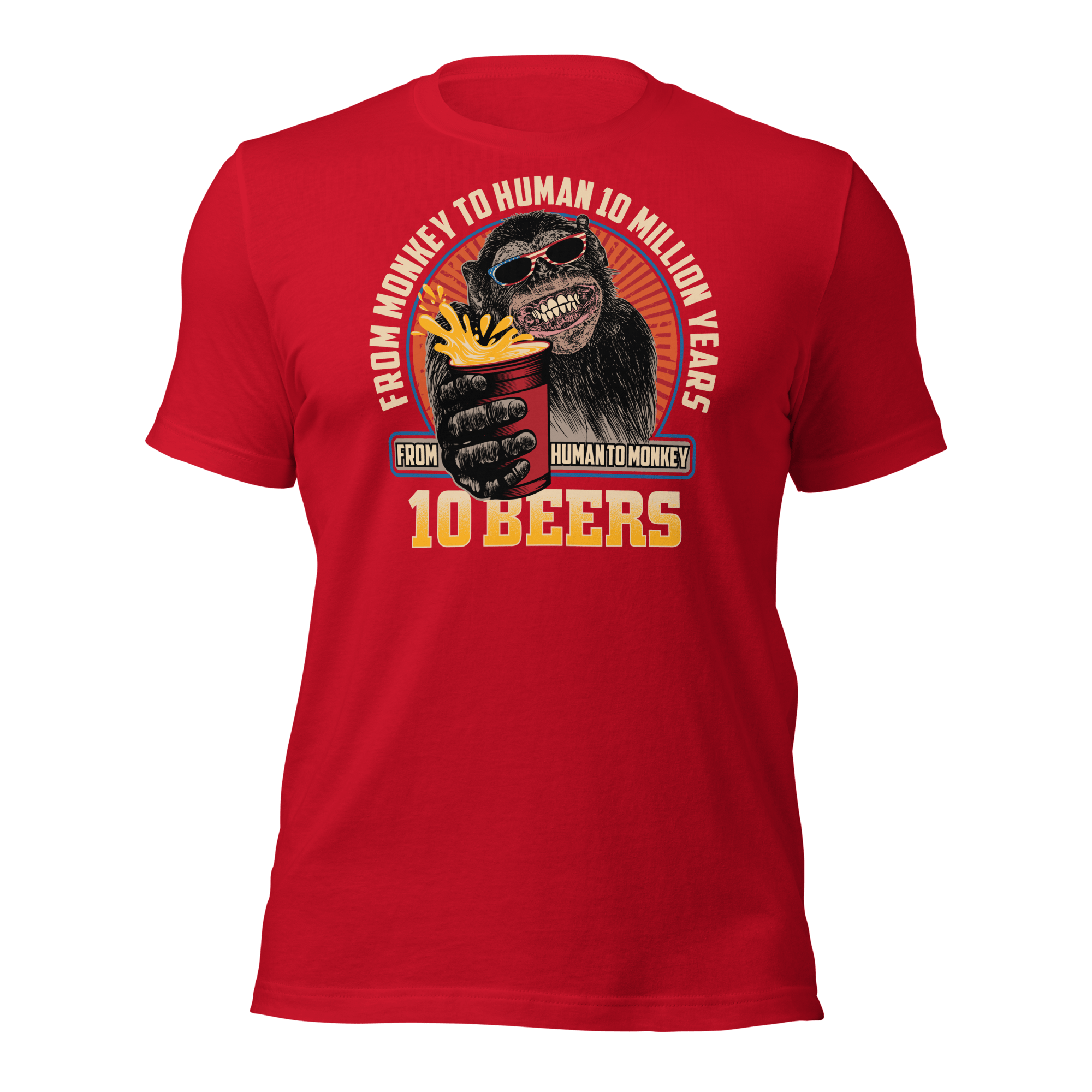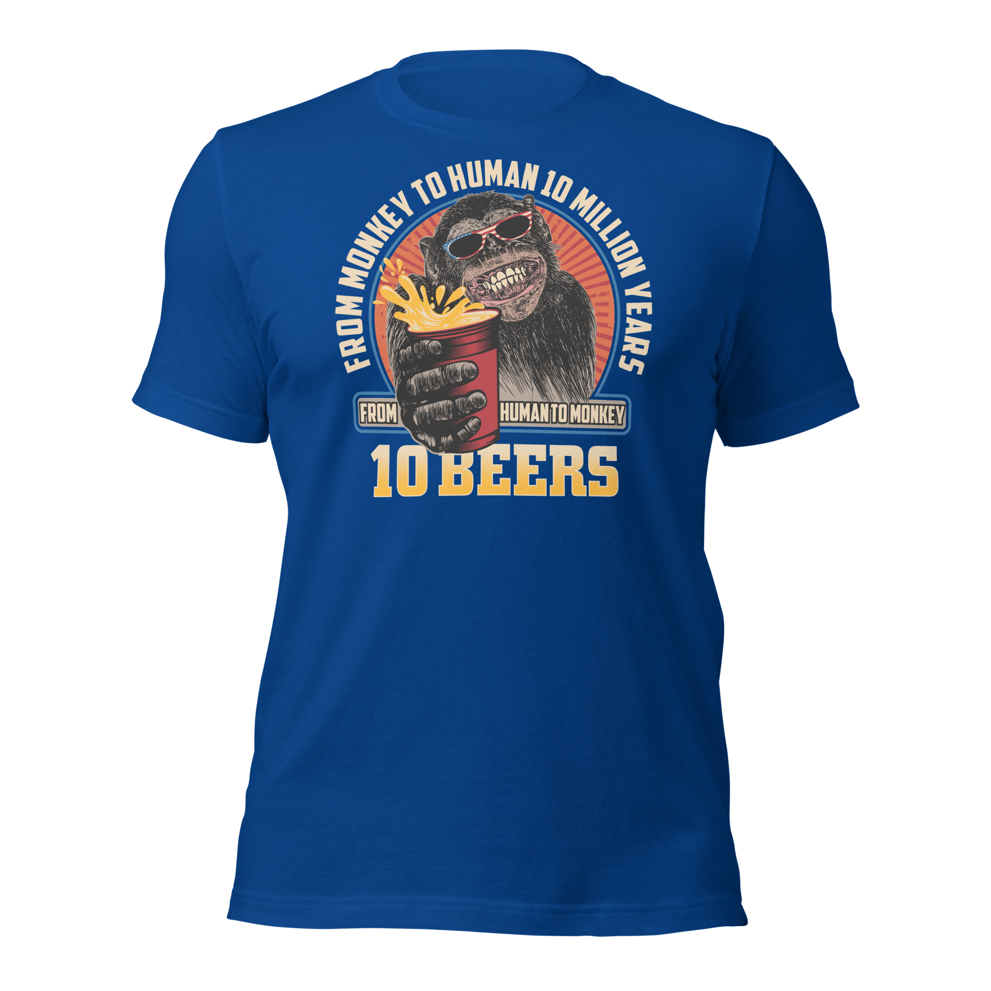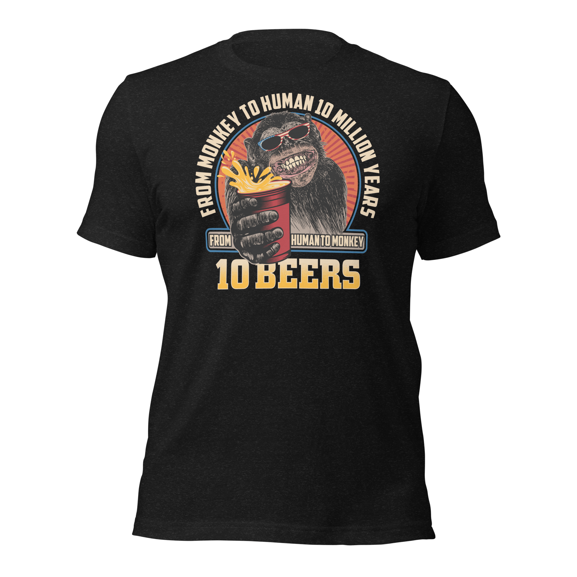 Celebrate the ancient journey from caveman to pint-puller with the “10 Million Years to 10 Beers” T-Shirt — the perfect mix of humour, history, and hops. Featuring a hilarious evolution-style graphic that ends in a well-earned drink, this tee is made for those who appreciate a clever joke and a cold pint.