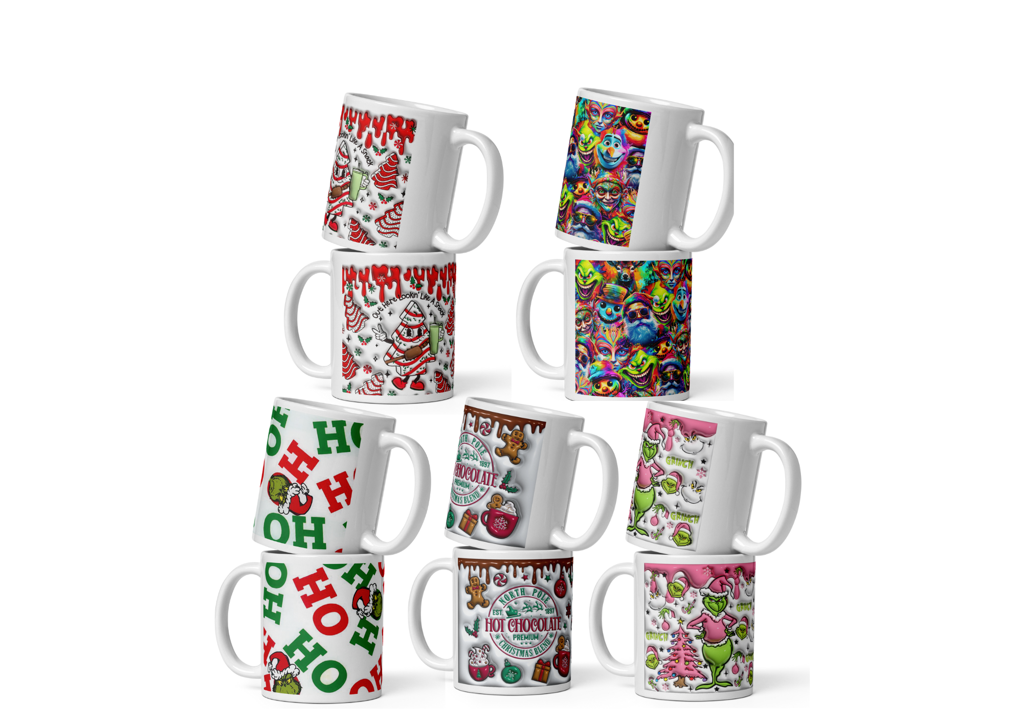 Get ready to celebrate the holidays with mugs that bring personality, fun, and a touch of mischief to your Christmas season. Whether you’re embracing your inner holiday rebel with a Grinch-inspired design, capturing the magic of snowy nights with a sparkling snowman, or enjoying the nostalgia of Santa’s sleigh soaring through the sky, these mugs are perfect for adding festive flair to your home. Each design is crafted to bring cheer, warmth, and holiday spirit to your mornings, while offering a unique twist on classic Christmas imagery.