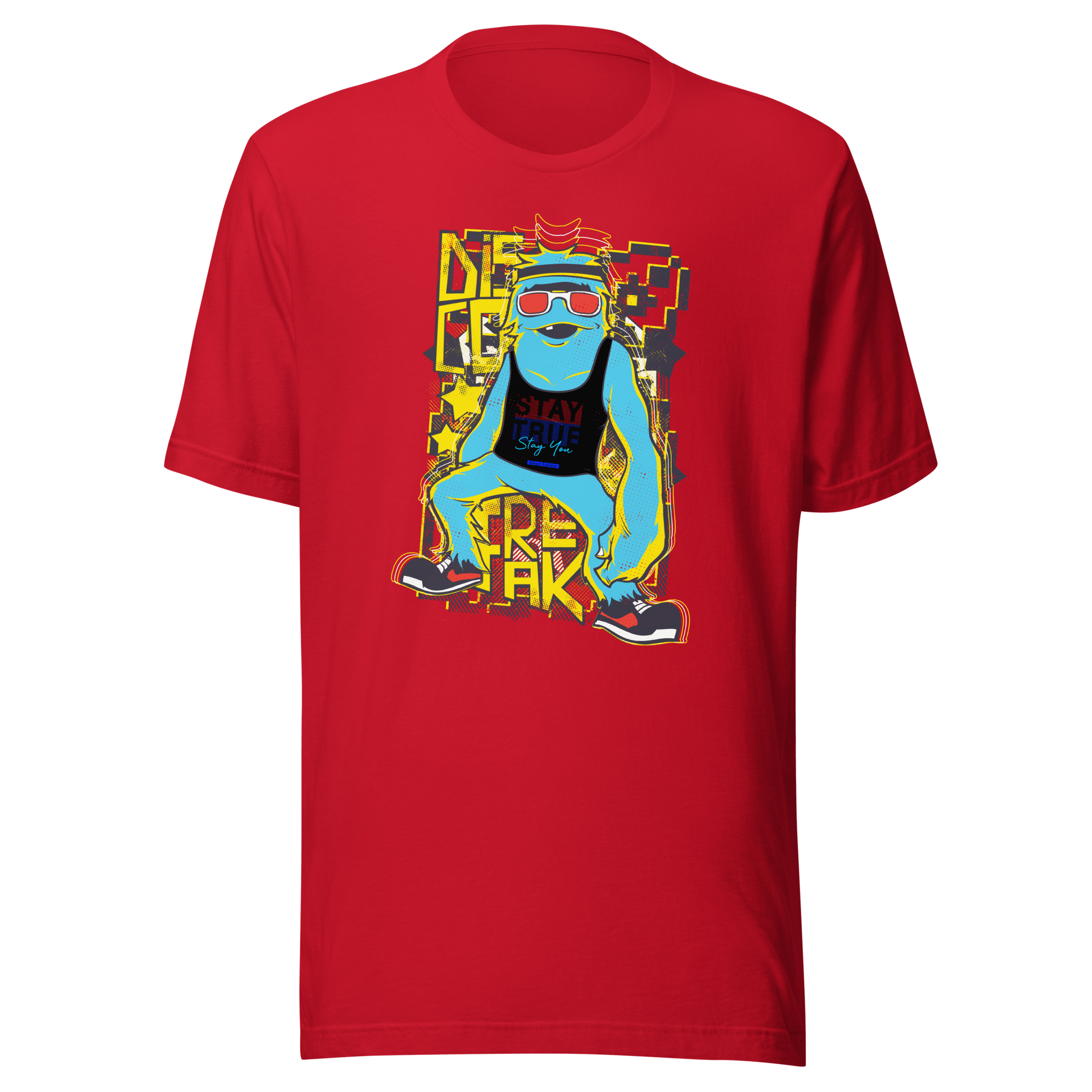 Bring the energy wherever you go with the Disco Freak Graphic T-Shirt. This bold red tee features a vibrant and playful front design that instantly captures the spirit of fun and self-expression. Moreover, the back showcases our signature embroidered logo, adding a premium and detailed finish.