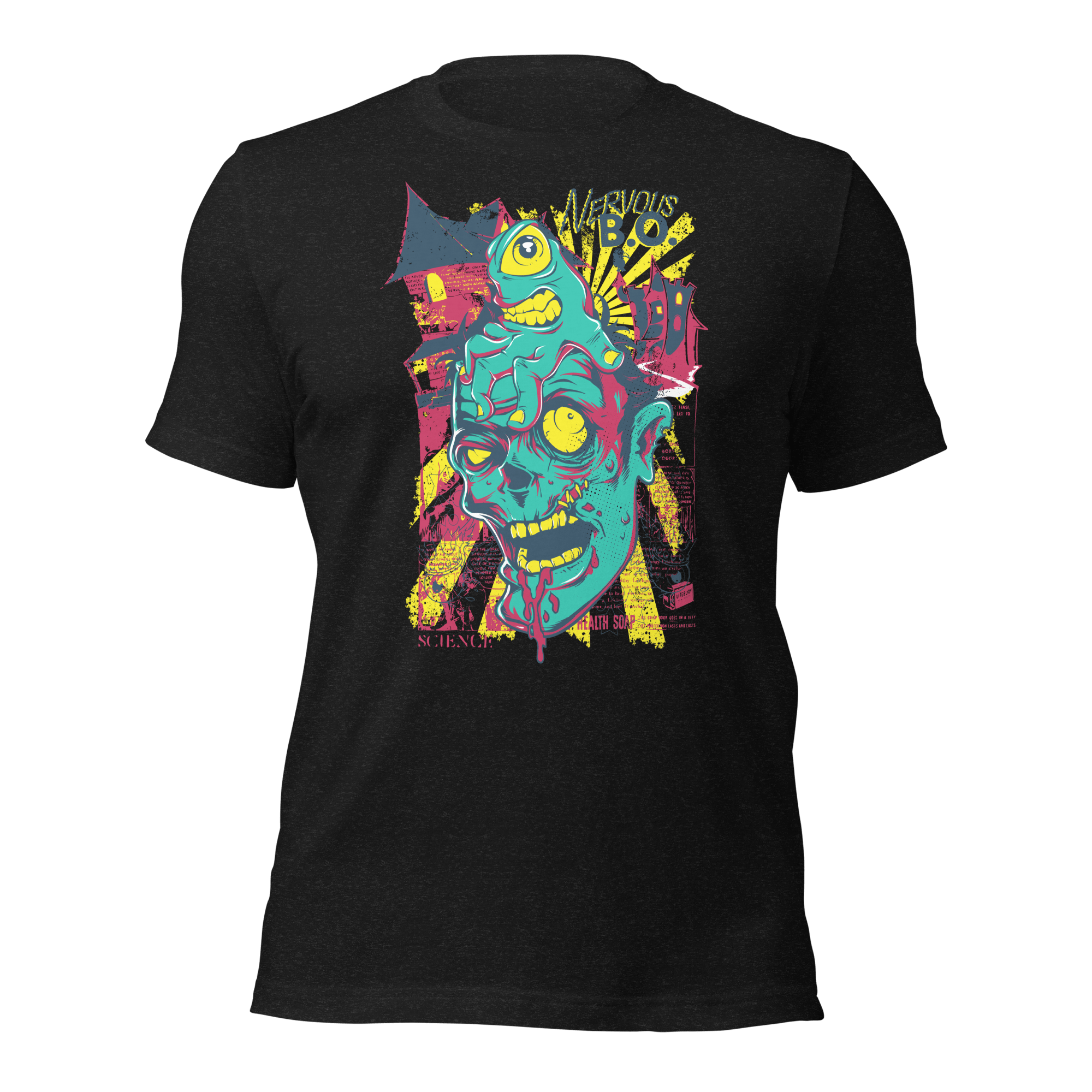 Step into the surreal with the Nervous Boy Zombie Graphic T-Shirt — a bold collision of horror, neon energy, and streetwear style. Featuring a chaotic, high-impact design with zombie flair and vibrant colours, this t-shirt is perfect for those who love to stand out, shock, and inspire.