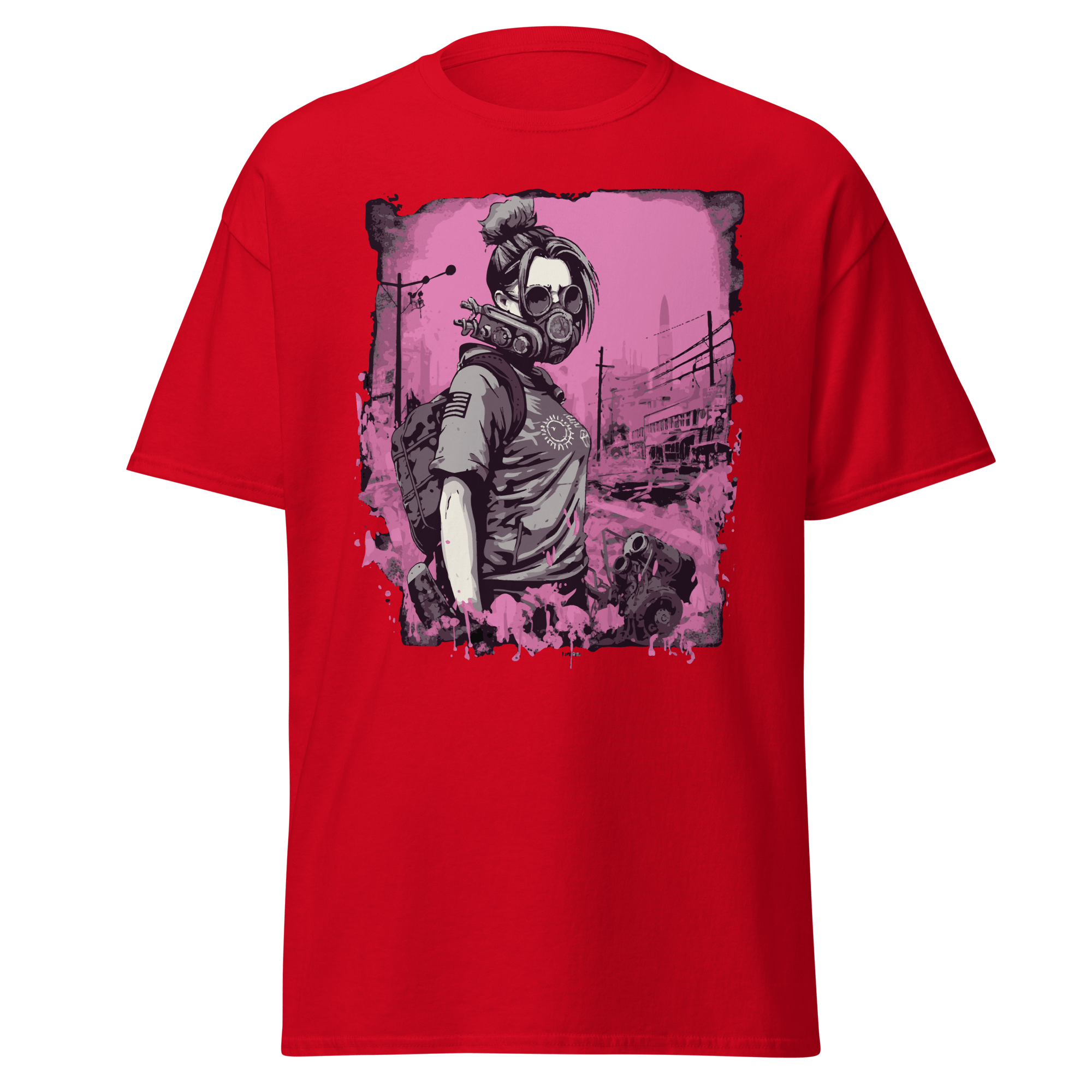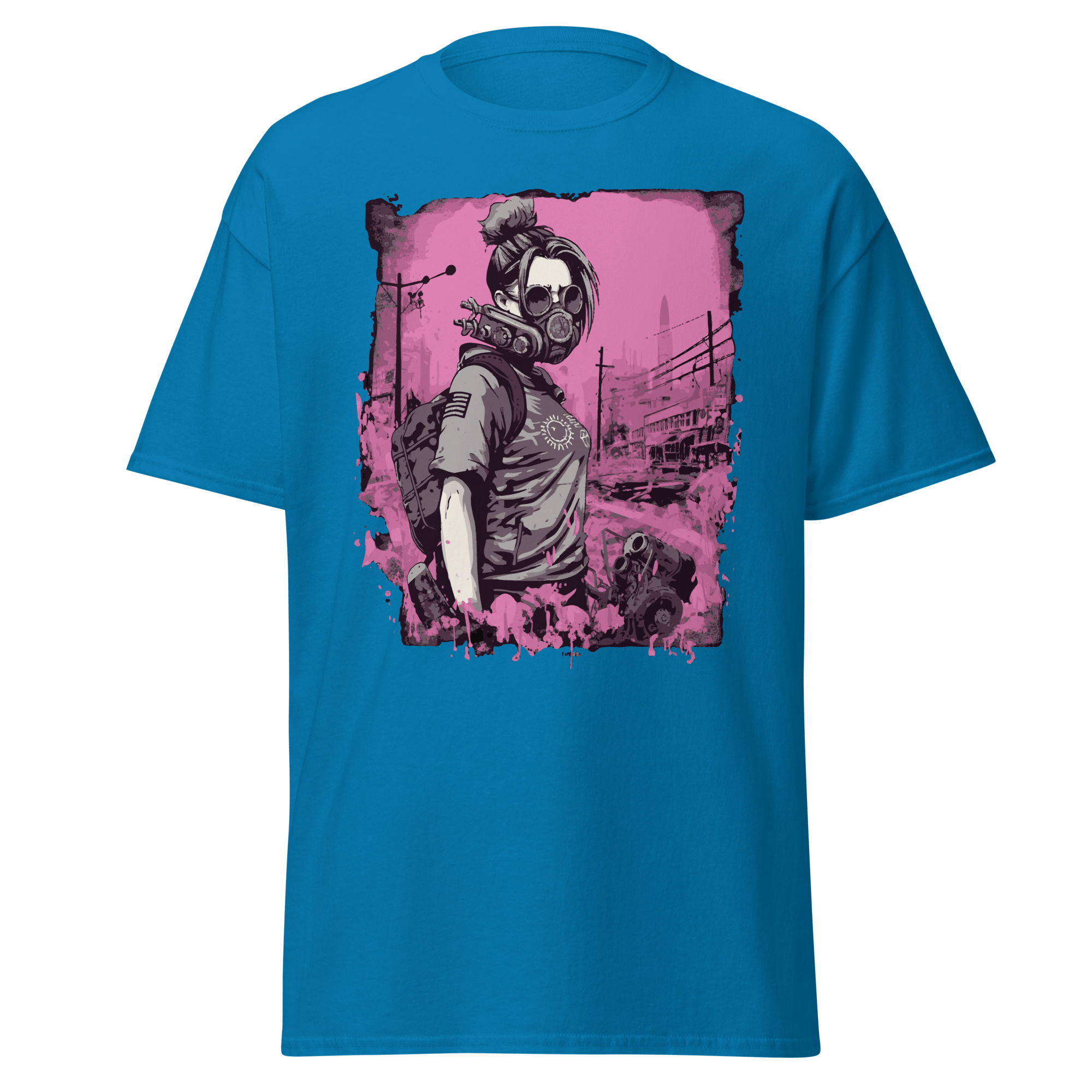 Face the end in style. The Apocalypse Streetwear T-Shirt turns heads with its bold survivor graphic set against a vivid pink backdrop. The bright sapphire blue fabric makes the design explode with energy—perfect for standing out wherever you go.