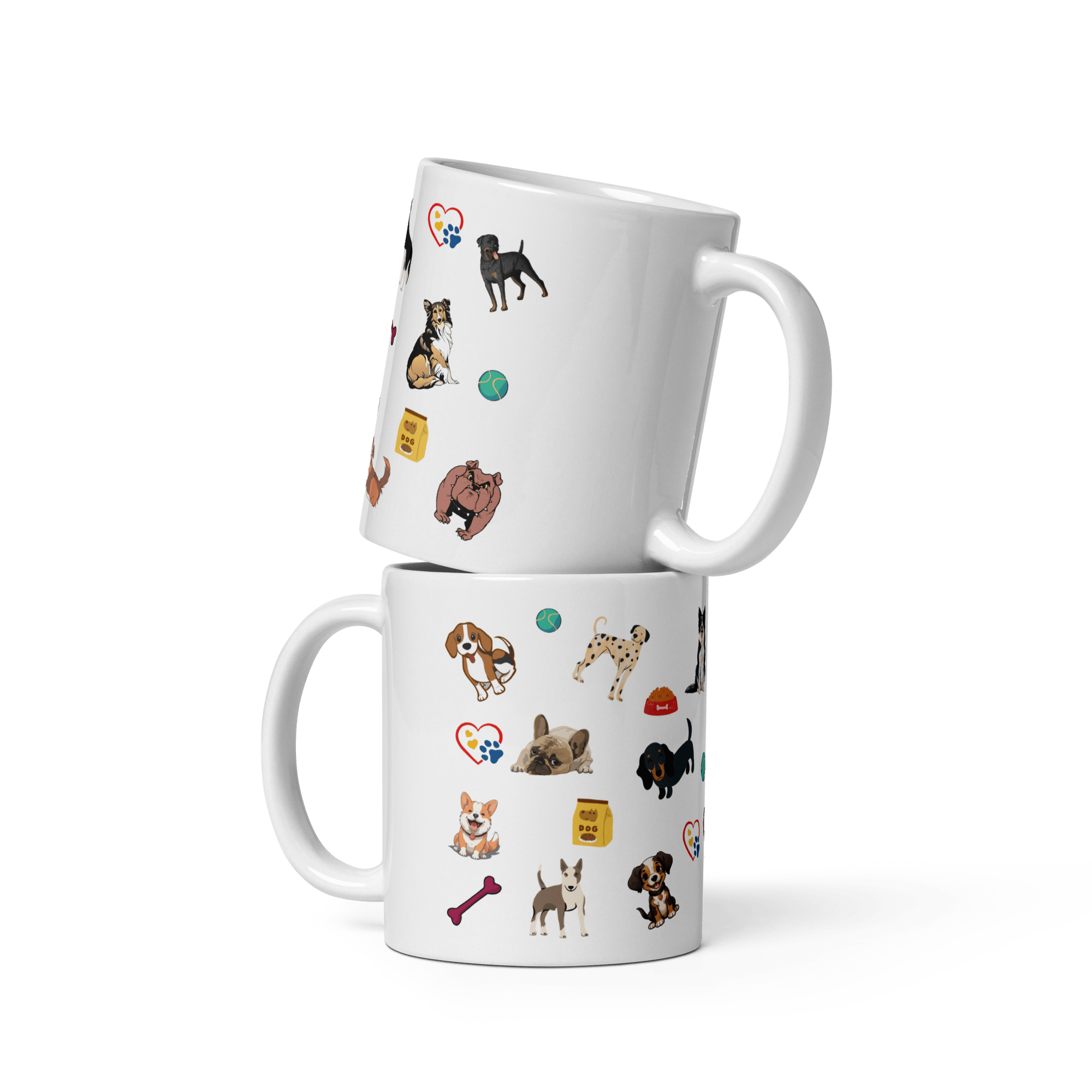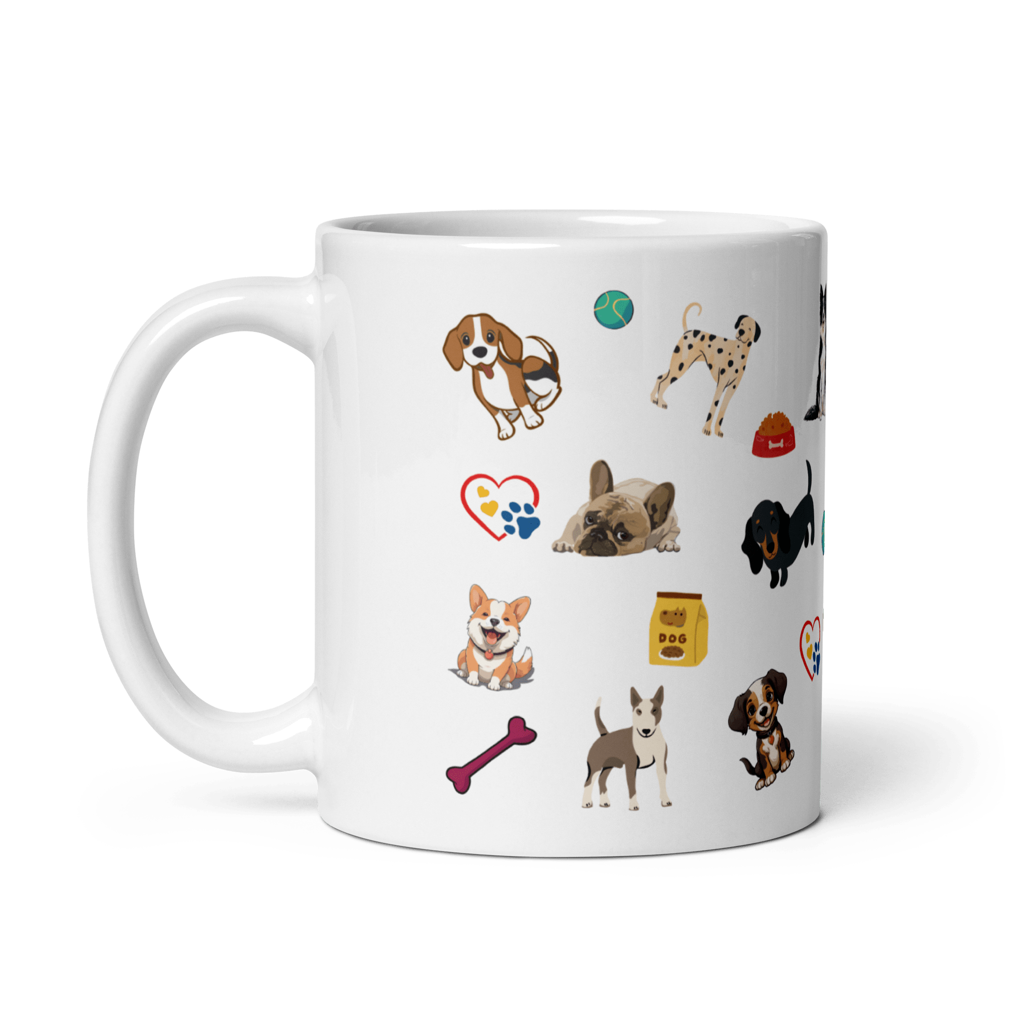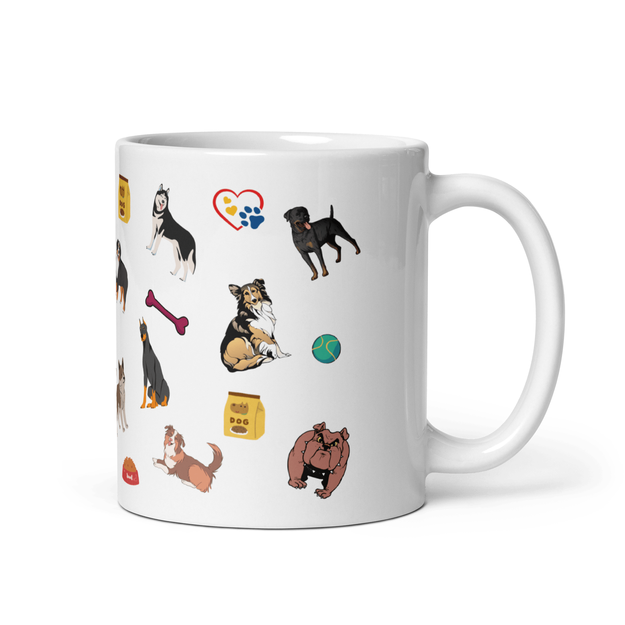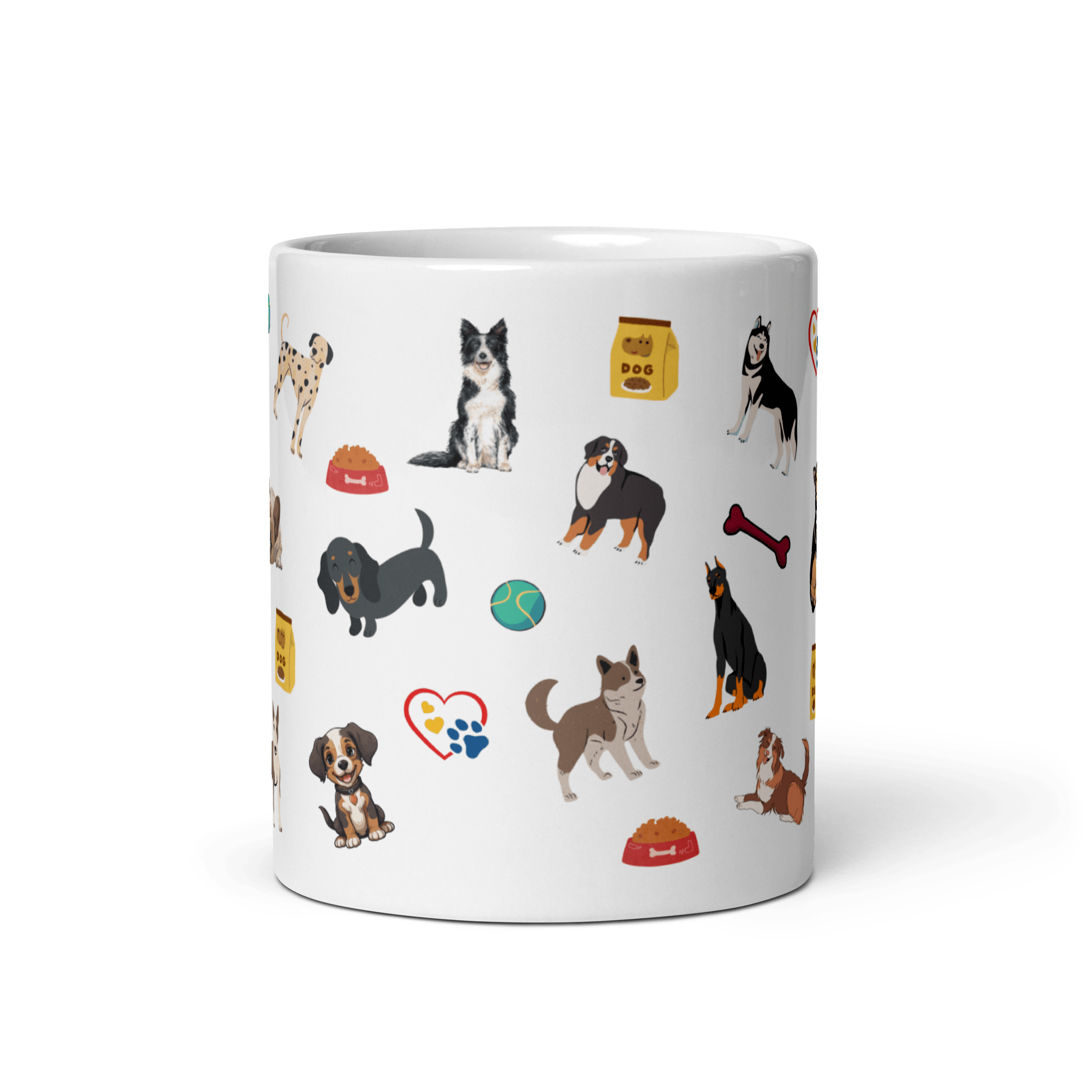 11oz ceramic mug with playful dog design. Dishwasher and microwave safe with vivid print. Ideal gift for dog lovers and daily use.