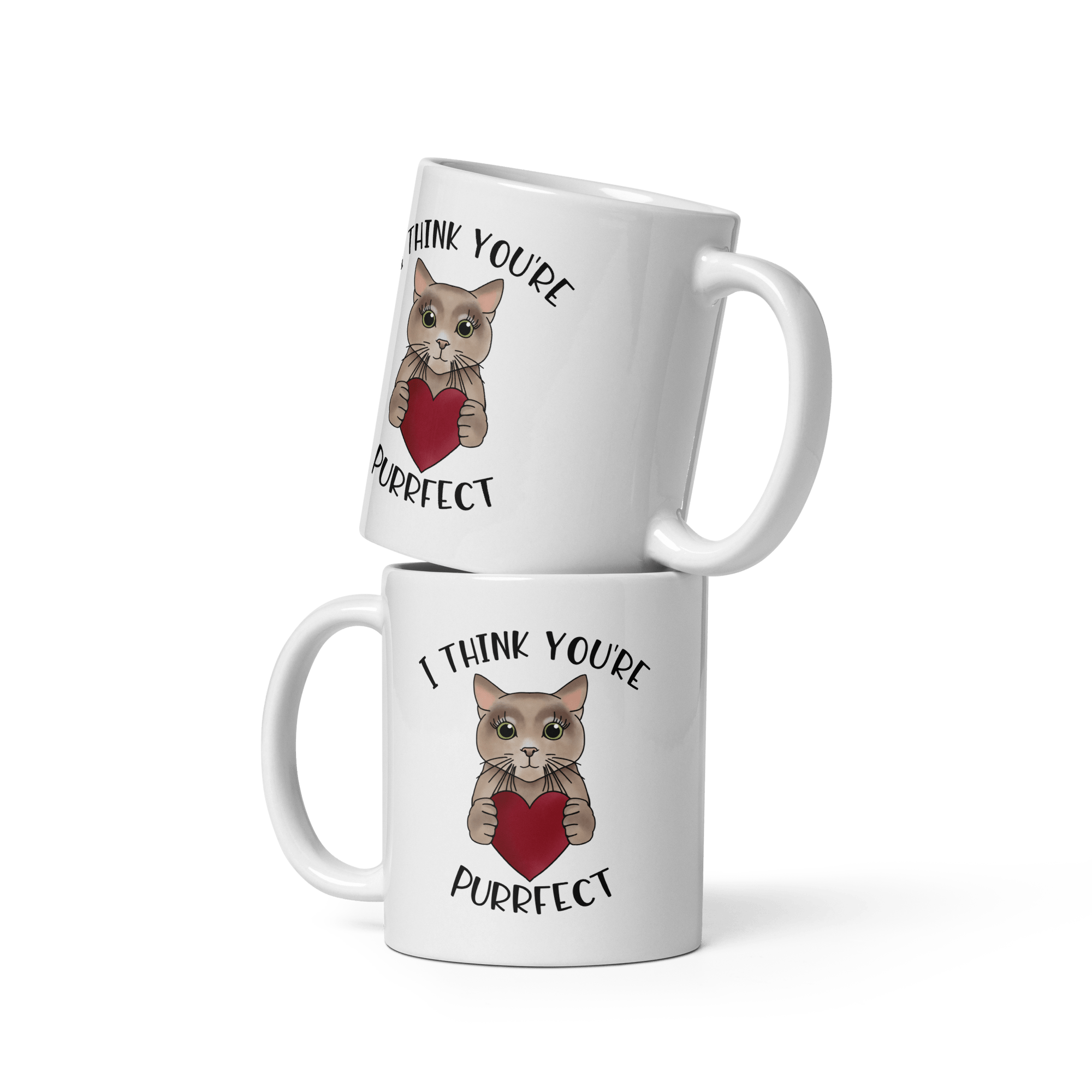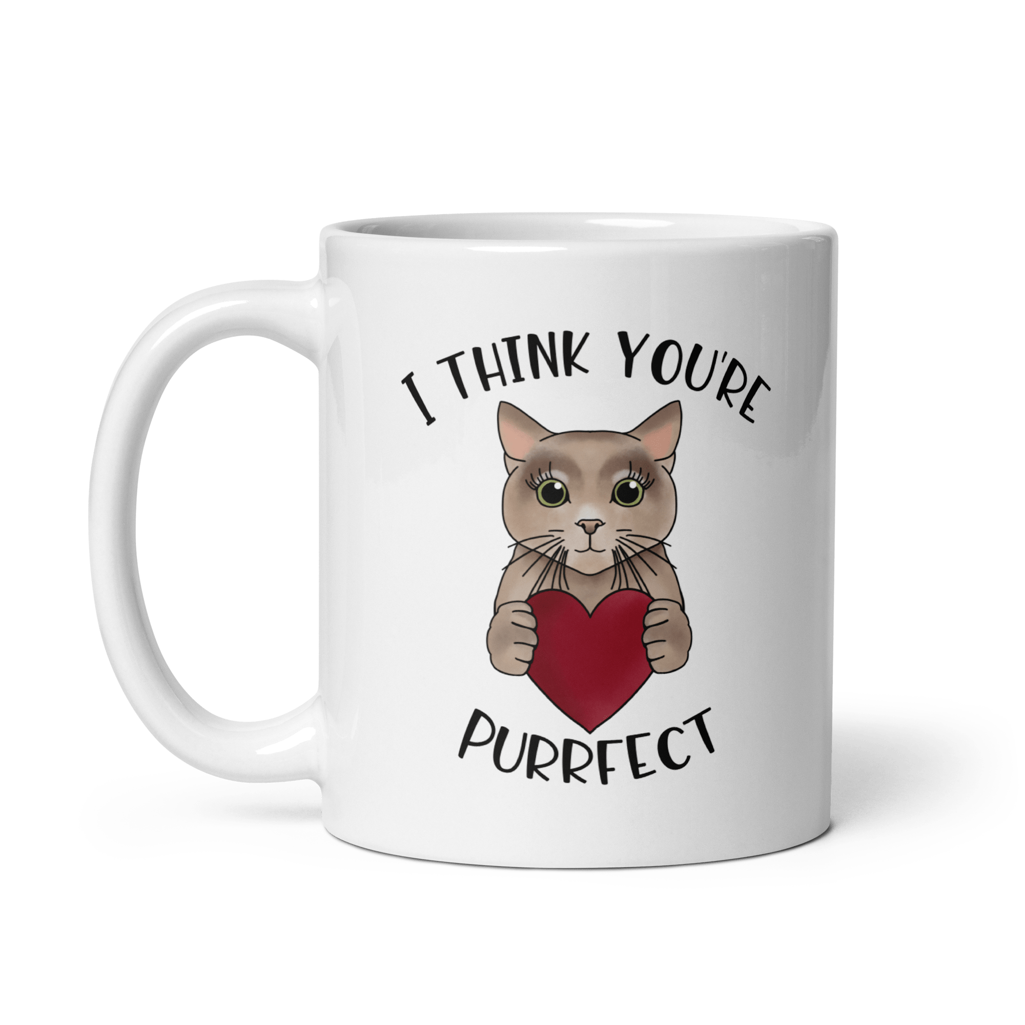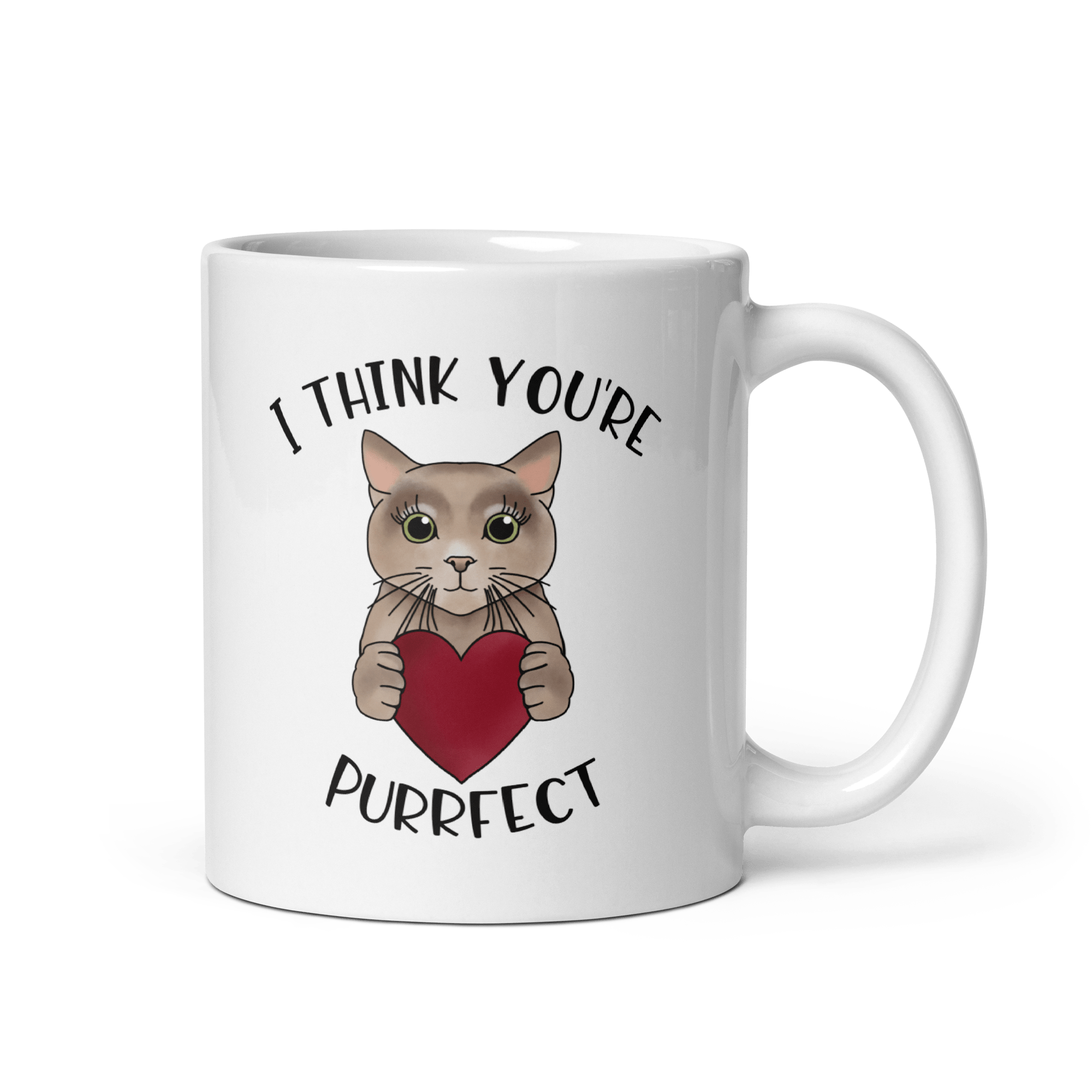 Purrfect Mug — Introducing the “Purrfect Mug” — the ideal way to start your day on the right paw! This adorable 11oz mug features a charming cat face design paired with the playful message “I think you’re purrrfect,” making it the perfect gift for any cat lover. With durable ceramic construction and an easy-grip handle, it’s both cute and practical for your morning coffee or afternoon tea.